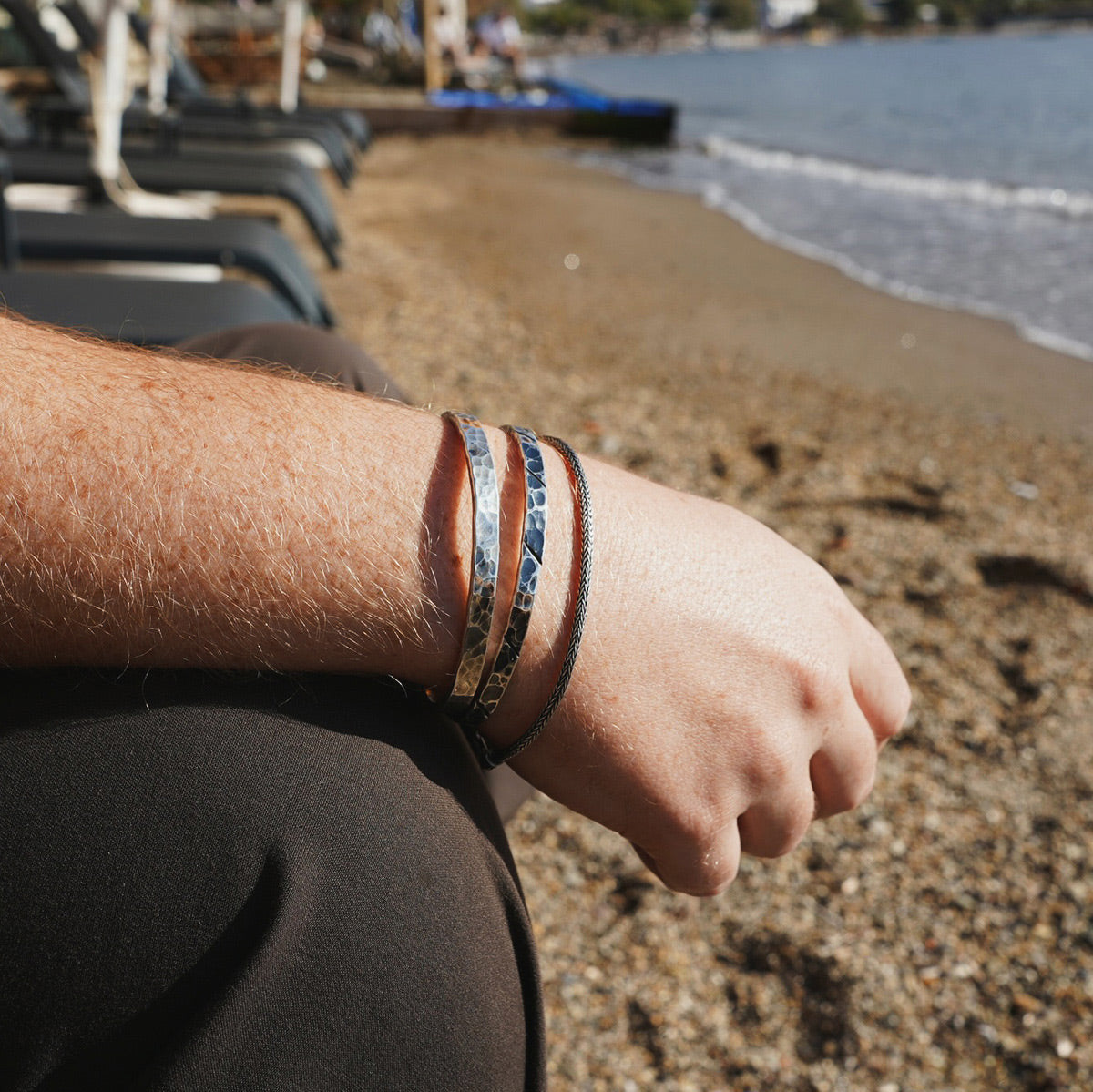 The Porto Cuff. Medium sized 925 sterling silver cuff hammered for texture with an oxidized finish. Handmade, hand-shaped, and hand-polished. No two exactly the same.